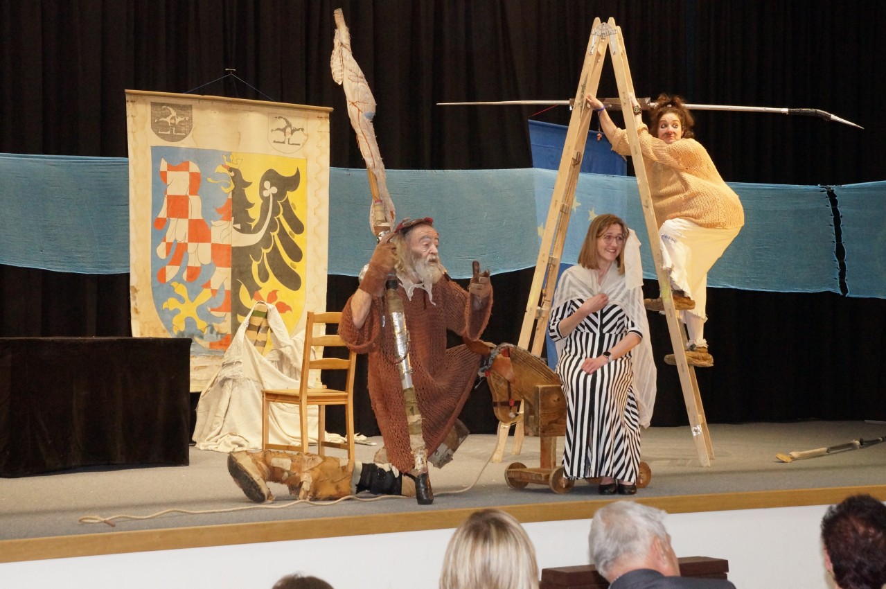 Tato „didaktická klauniáda“ inspirovaná románem Miguela de Cervantese Saavedry, uchopená podle vzoru Jana Ámose Komenského, režírovaná panem Bolkem Polívkou byla odehrána ve velkém sále Kulturního domu Troubelice a všichni přítomní diváci si odnesli bohatý kulturní zážitek plný smíchu a legrace.